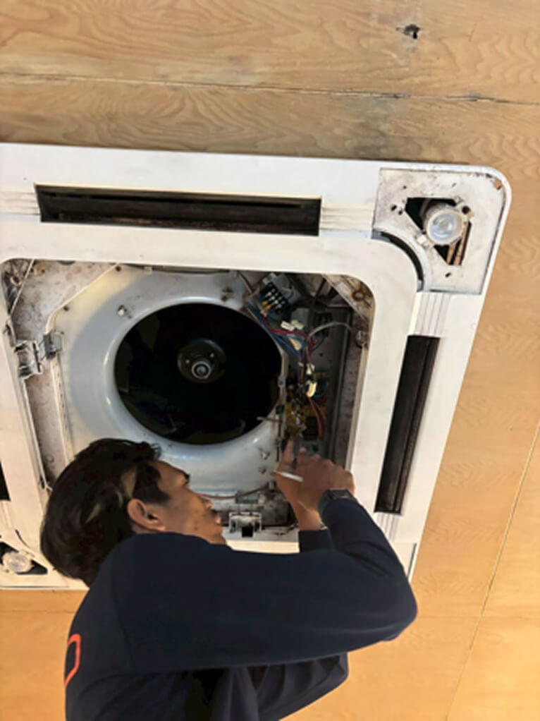 経験豊富な専⾨スタッフが エアコン内部の細部に⾄るまで徹底的に洗浄・点検 を⾏い、常に清潔で安⼼できる空気環境を実現します。