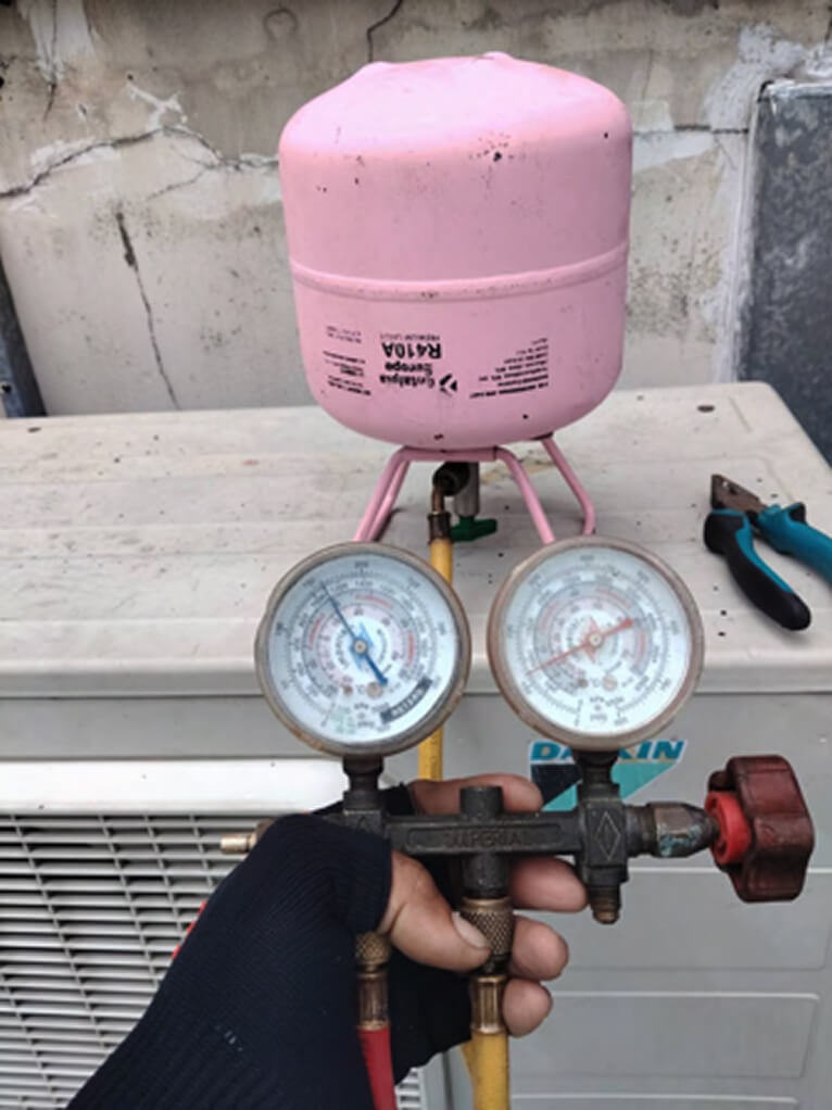 「冷房の効きが悪い」「設定温度になかなか下がらない」そんな症状がある場合、冷媒ガスが不⾜している可能性があります。当サービスでは、適切なガス補充を⾏い、エアコンの冷却能⼒を回復。快適な室温を素早く実現します。
